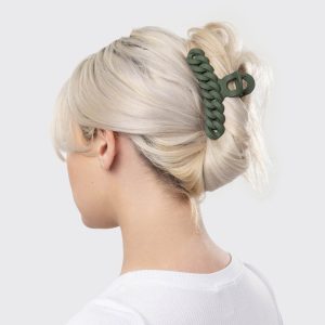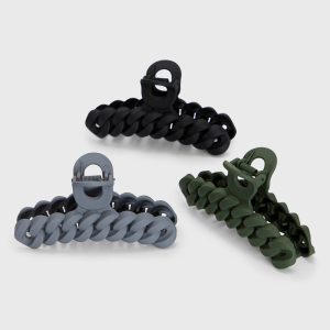Step out looking effortlessly stylish with these sustainable chain claw clips. Our elevated take on the classic hair clip lets you twist your hair up with zero effort while making an on-trend statement. Crafted with recycled materials. these eco-friendly clips let you feel good about looking good. Choose from two sets of versatile neutrals to coordinate with all your favorite outfits.